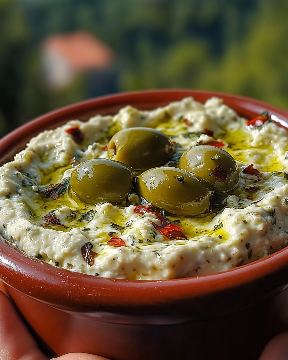 5. Transfer the dip to your serving dish, and if you’d like, garnish with a few whole olives or a sprinkle of fresh herbs for a lovely touch. Serve immediately or refrigerate for an hour to let the flavors meld together!