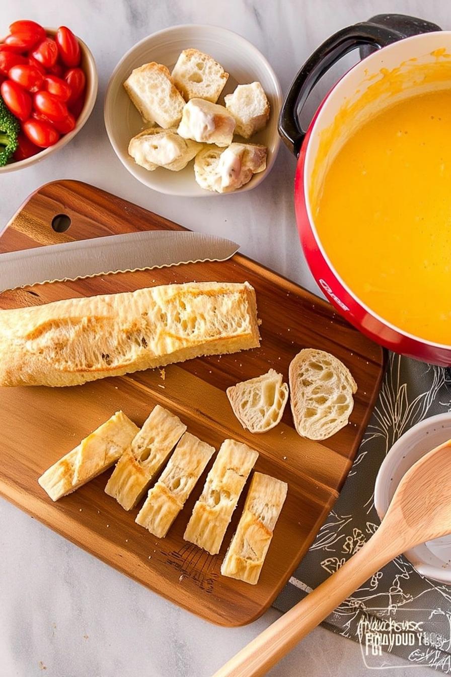 - Can I make this cheese fondue ahead of time? Yes, you can prepare it a day in advance and reheat to serve.