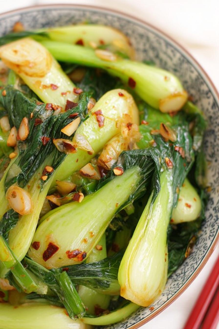 Chili Garlic Bok Choy pairs beautifully with steamed rice or grilled salmon. For an extra touch, serve it alongside my Creamy Garlic Mushroom Pasta for a satisfying meal.