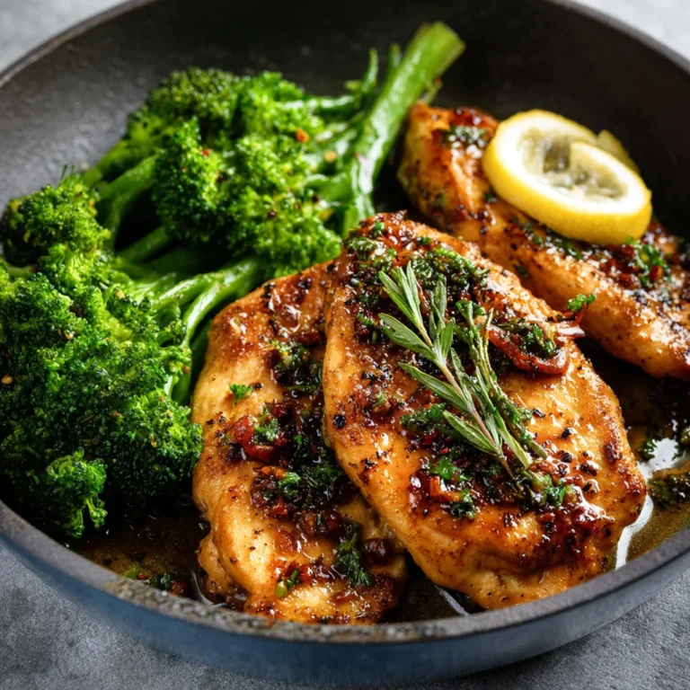 This Garlic Butter Chicken with Broccoli is a quick and flavorful dish that’s perfect for weeknight dinners. Juicy chicken thighs are sautéed in a rich garlic butter sauce and served with tender broccoli.