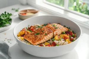 Spicy Cajun Salmon with Flavorful Seasoning is a vibrant dish that expertly combines the rich taste of salmon with a robust blend of Cajun spices. This dish is characterized by a balance of heat, smokiness, and distinctive seasoning that elevates the natural flavors of the fish. The Cajun seasoning typically includes a mix of paprika, cayenne pepper, garlic powder, and other spices that give the salmon a zesty kick.